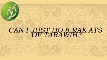 Watch LaterAdded 01:10 Q&A : Questions and Answers Q&A: Can I just do 8 rak’ats of Tarawih by Mufti Abdur Rahman ibn Yusuf Dr. Mufti Abdur-Rahman ibn YusufJuly 11, 2013 March 1, 2020 Title: Can I just do 8 rak’ats of Tarawih This video was taken from a question and answer session with Mufti Abdur Rahman. Que... 09.7K812